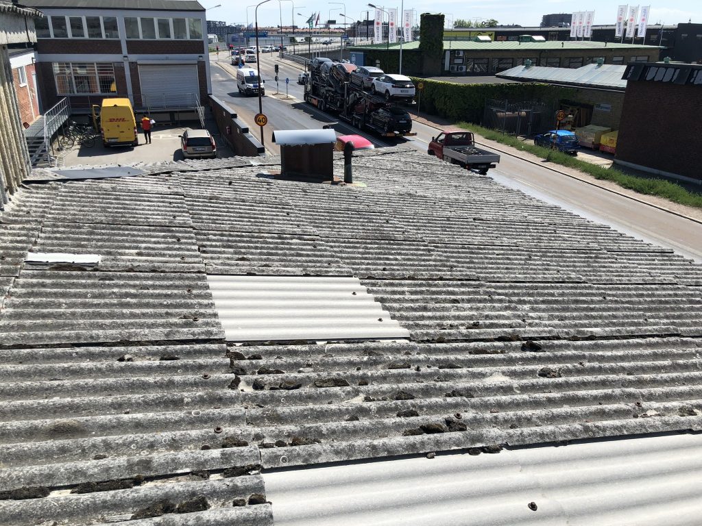 Vy från taket. Bilar och skrot som transporteras på Lodgatan