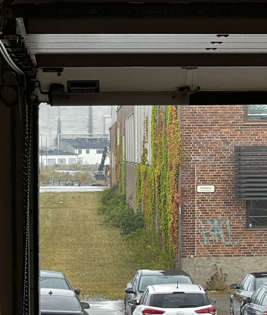 Genom Mygels port skymtas rivningstomten där Malmö Återbyggdepå en gång låg